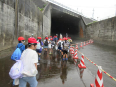また、学区内を流れる吸川が氾濫しないための放水路トンネルに入って、施設の大きさなどを体験しました。トンネルが南小学校そばまでつながっていることに驚いていました。