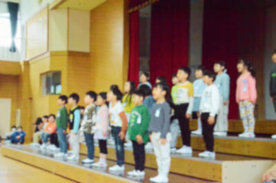 1年生からは、学級紹介のあいさつ。元気な声が響いていました。